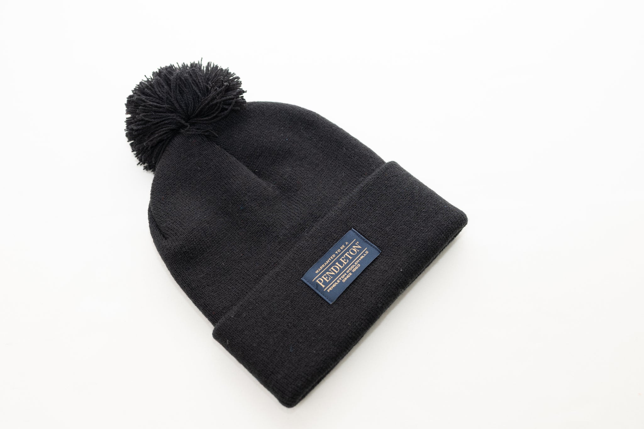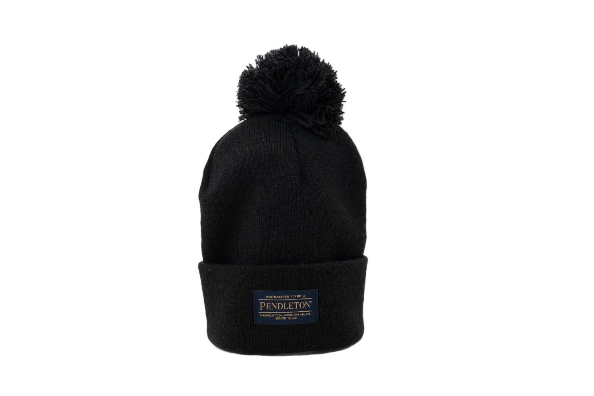 Ready for the winter months? Stay warm and stylish with the black pom top Pendleton Beanie, crafted from soft, stretchy ribbed acrylic knit for a comfortable fit. Featuring the iconic Pendleton logo patch on the turn-back brim, this beanie offers classic appeal and reliable warmth.