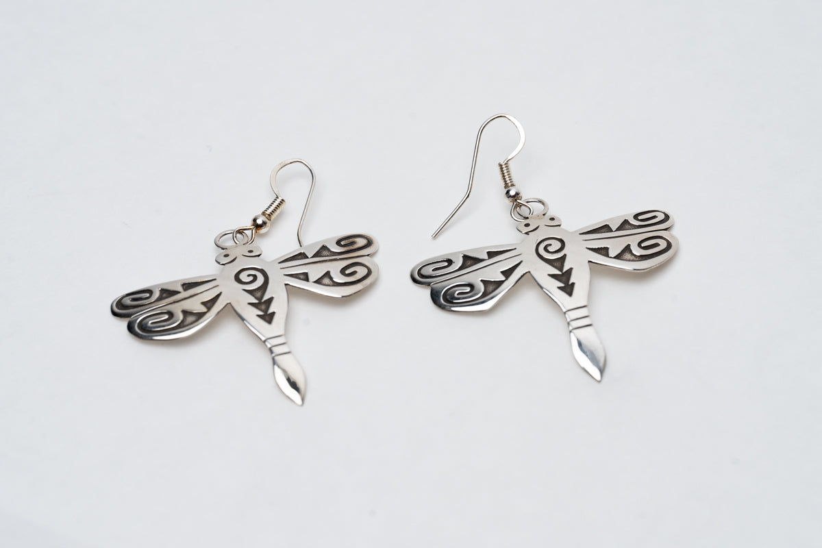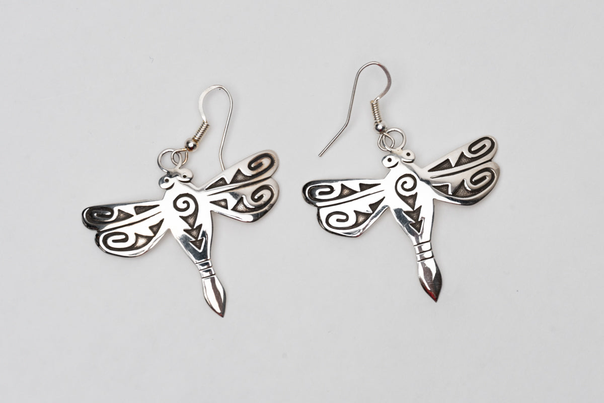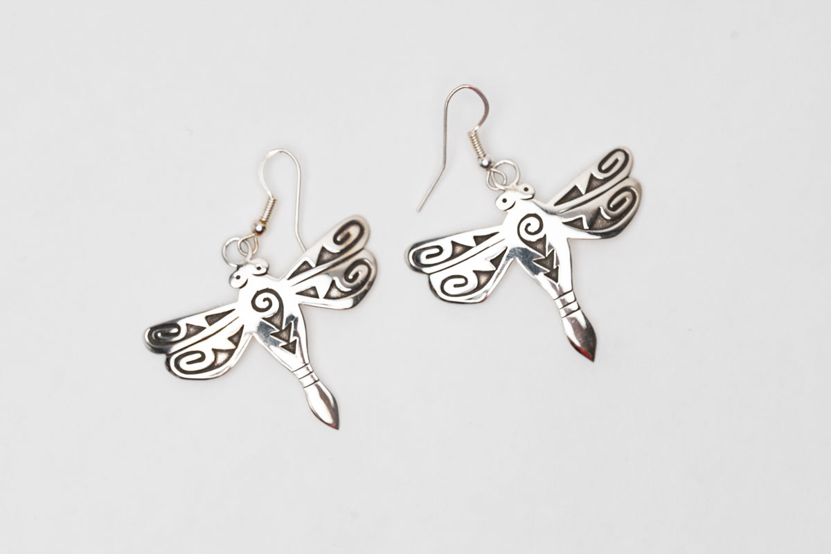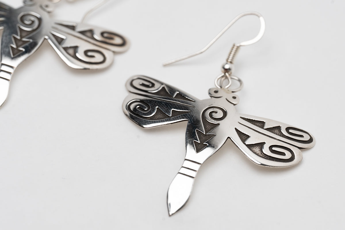 These Silver Overlay Dragonfly Earrings feature a beautiful layering of silver over silver, creating intricate cutout designs that catch the eye. Inspired by the Hopi tribe’s rich heritage, the swirling patterns symbolize the vast universe and the flow of endless time. These earrings offer a meaningful way to celebrate tradition while adding a touch of unique elegance to your everyday or special-occasion wardrobe. Perfect for anyone who appreciates handcrafted detail and stories that go beyond the surface.