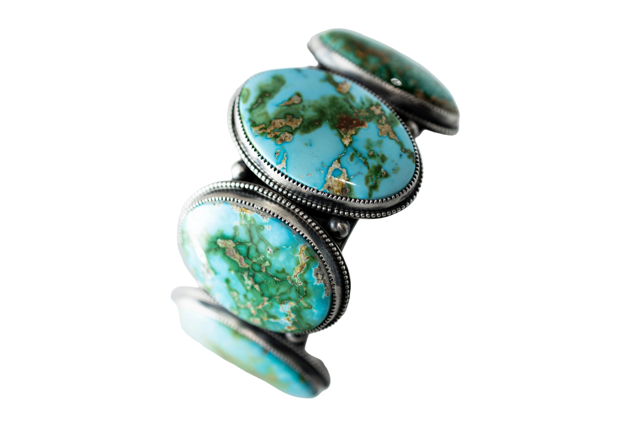 This isn’t a display-case bracelet. It’s meant to be worn hard and worn often—the kind of piece that picks up stories along the way. Real turquoise. Real silver. Real Navajo!