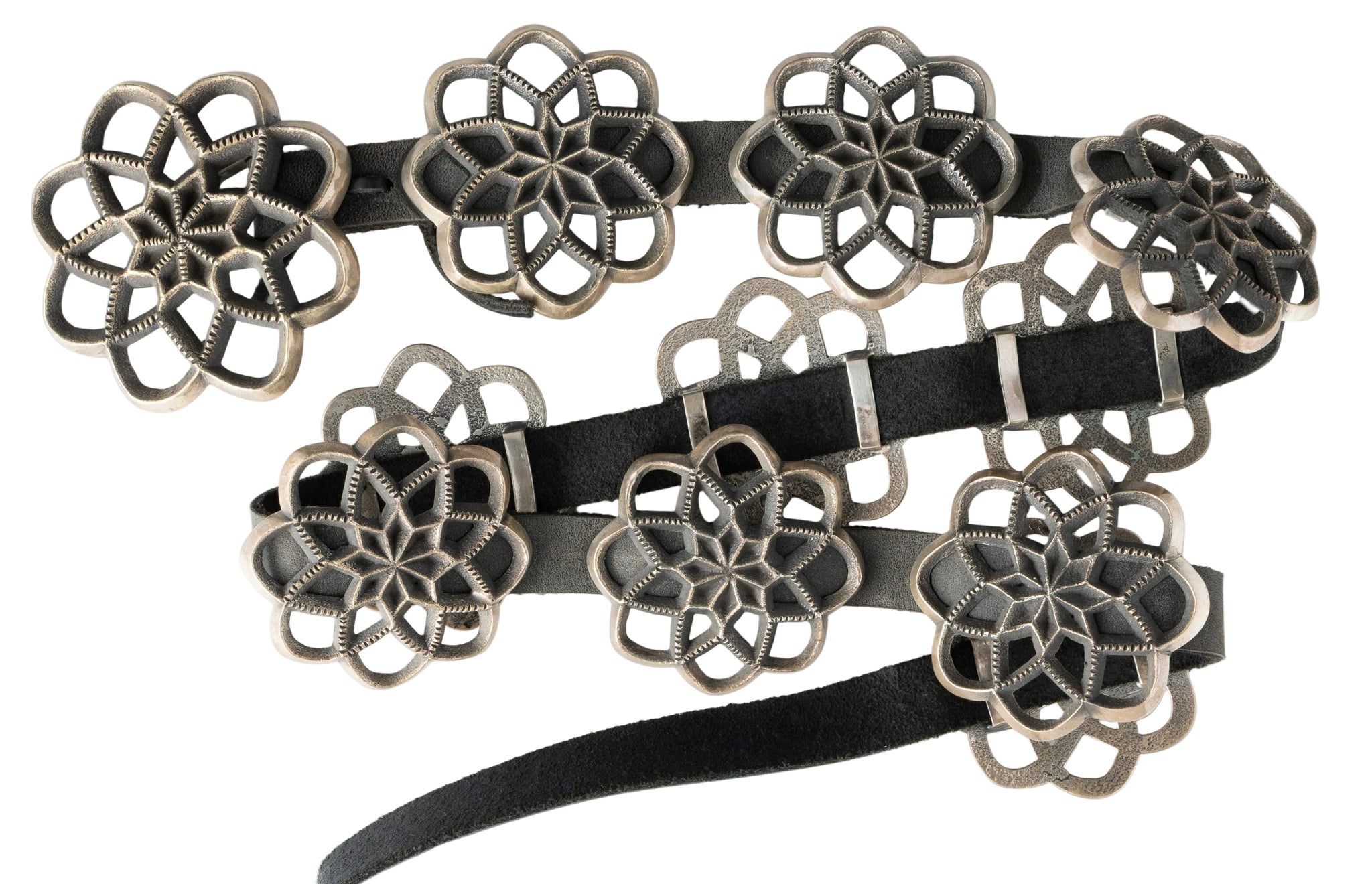 Harrison Jim Navajo Sterling Silver Cast Cut Out Concho Belt